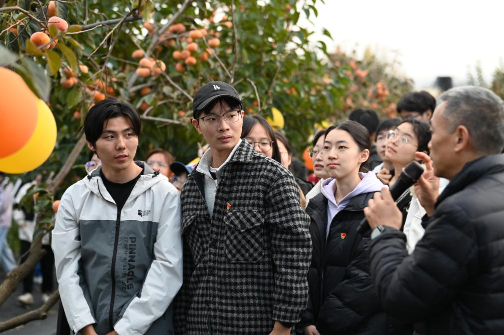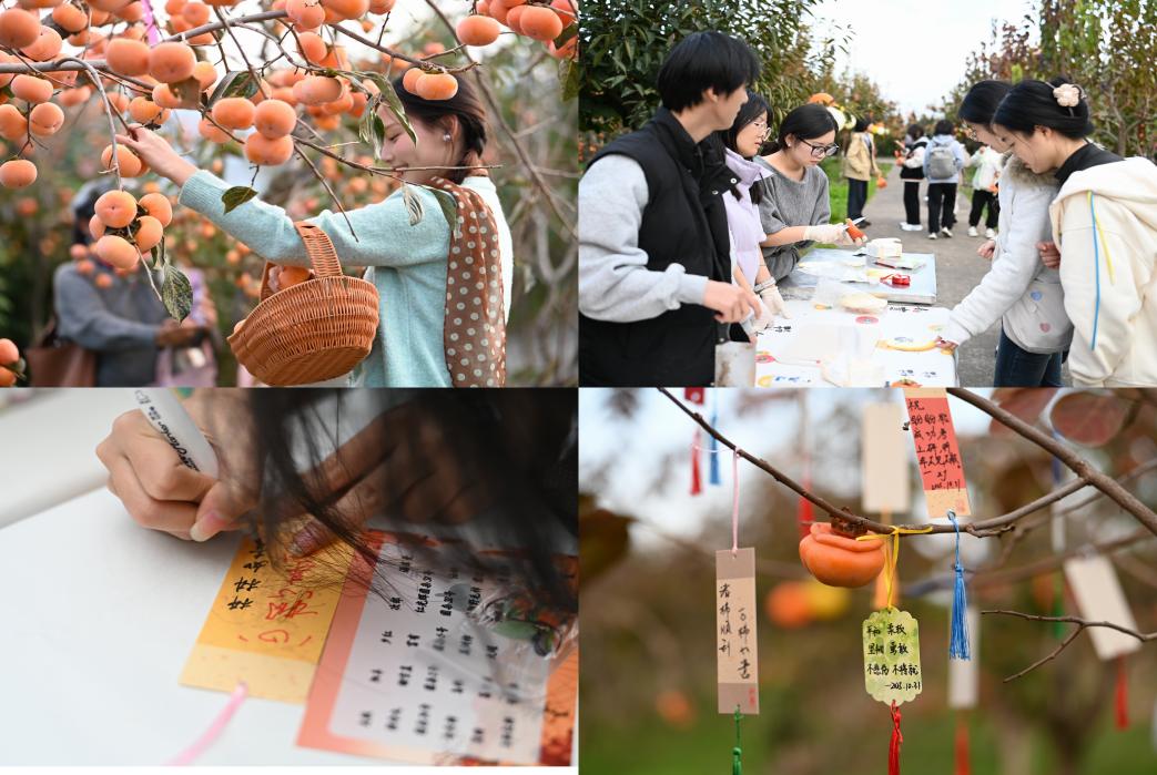活动之中,同学们在听取了杨勇教授对柿子品种、采摘要点、保护事项的介绍后,还参与了各式各样有关柿子的活动。同学们或声情并茂地朗读有关柿子的古诗词,品味古今柿子浓浓的文化韵味;或亲自采摘柿子交给活动负责人,切开后测试酸涩程度,接着品尝了不同种类的柿子,享受甜润的果肉,体会涌上心头的幸福感。最后,同学们将自己的美好祝福写在贺卡上,一一挂在柿树枝头,表达对柿子般甜蜜生活的向往和期望。