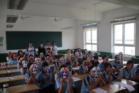 图为学生们的素质拓展五谷画与素质拓展脸谱画