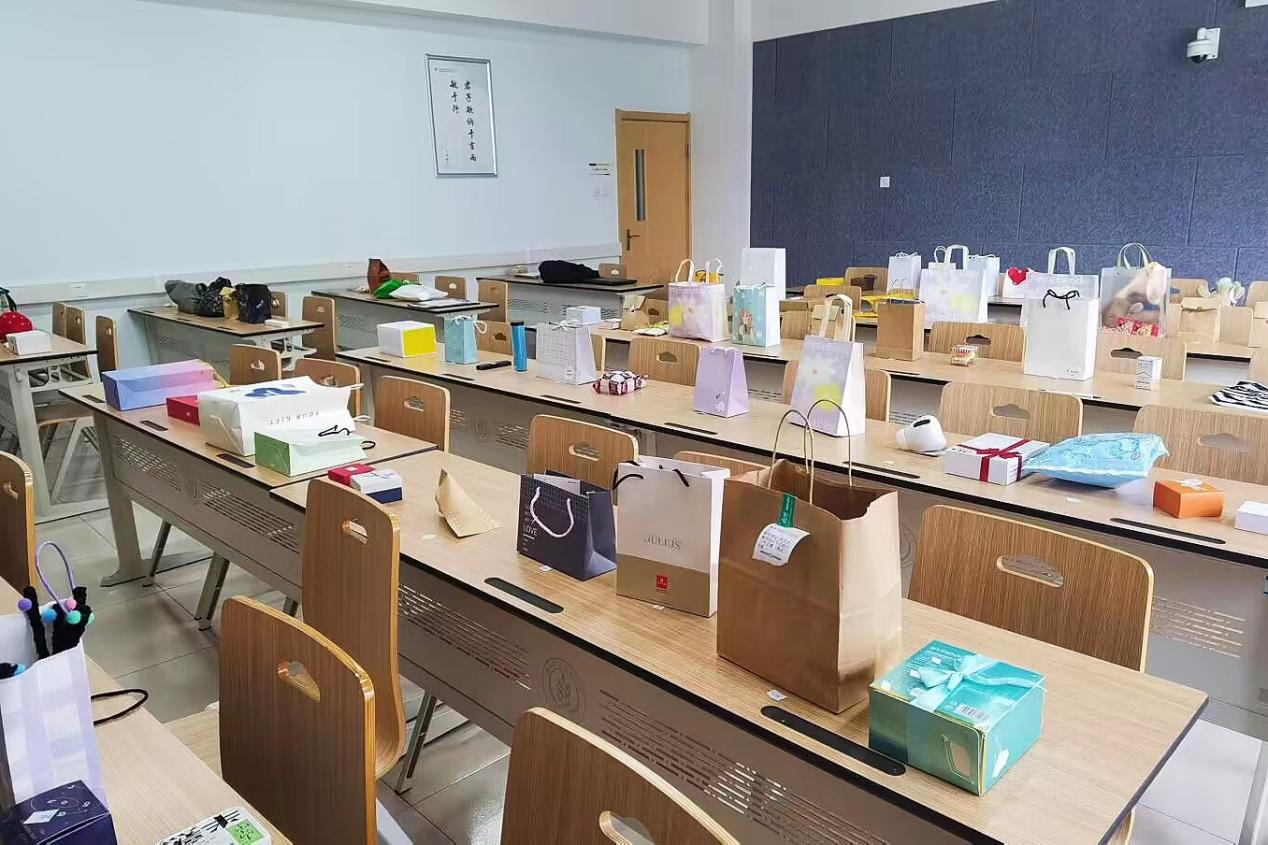 本次活动在八号教学楼展开,宣传期间,600余名学生积极参与,用心准备。活动伊始,志愿者分为三组,分别负责收取礼物,盲盒排序以及派发礼物工作。3月26日下午,参与学生提前10分钟到场,有序进行签到并依次把包装好的礼物递交给工作人员,在规定时间内,工作人员将礼物编序后投入盲盒中,由各参与者亲自抽取,并在规定的教室中领取礼物。在各位同学的协作互助下,活动过程有条不紊,井然有序。