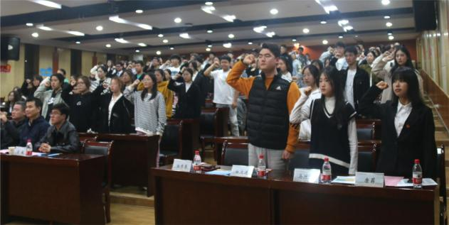 大会最后,陆秀萍副书记带领第十七届阳光团工委学生骨干进行庄重宣誓。第十七届阳光团工委将集以往之经验,在实践中进步,在进步中创新,在创新中坚守。“高余冠之岌岌兮,长余佩之陆离”——“跨越,再跨越”是思想的日新,日日新;“天生一个仙人洞,无限风光在险峰”——“跨越,再跨越”是意志的坚强,坚坚强;“春风浩荡满目新,征衣未解再跨鞍”——“跨越,再跨越”是脚步的前进,前前进。夜幕降临,华灯初上,十六届阳光团工委的故事已接近尾声。晨曦微露,日出扶桑,十七届阳光团工委任梦蝶翅飞展。十七届阳光团工委将以“跨越,再跨越”之姿,在华夏万里赤寰的美好画卷上书写一笔少年书生意气飞扬。