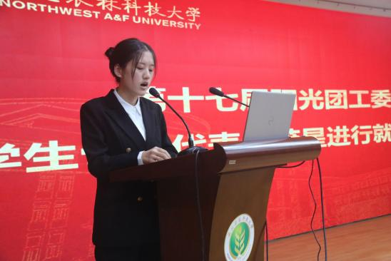 已度关山远,而今更向前。为协助做好西北农林科技大学资助育人工作,表彰第十六届阳光团工委学生干部为阳光团工委做出的贡献,帮助第十七届学生干部全面熟悉工作,确立目标与未来发展方向,10月20日晚,第十七届阳光团工委换届大会于北绣南报告厅顺利召开。大会特邀学生工作处副处长、学生资助管理中心主任薛建鹏老师,学生资助管理中心副主任仲会老师,学生资助管理中心副主任王阳修老师,经管学院辅导员、阳光团工委第十三届管理部学生骨干常楠老师,草业学院辅导员、阳光团工委第十四届副书记王辉老师,我校第24届研究生支教团成员、阳光团工委第十四届副书记刘淑琦同学莅临指导。