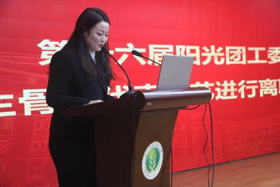 换届大会伴随着两位负责人代表的就职演讲渐入尾声。两位代表就自身在阳团经历、对未来的展望及对十七届阳光团工委未来工作方面作了发言。由第十七届阳光团工委学生骨干代表朵茂星和第十七届阳光团工委人文支部学生骨干代表顾婉婷进行就职演讲,表示出了阳团的坚定决心。涓流积至沧溟水,拳石崇成泰华岑。作为阳光团工委的一份子,我们应该有一份热,发一份光,为学校的资助育人工作献出自己的一份力量。