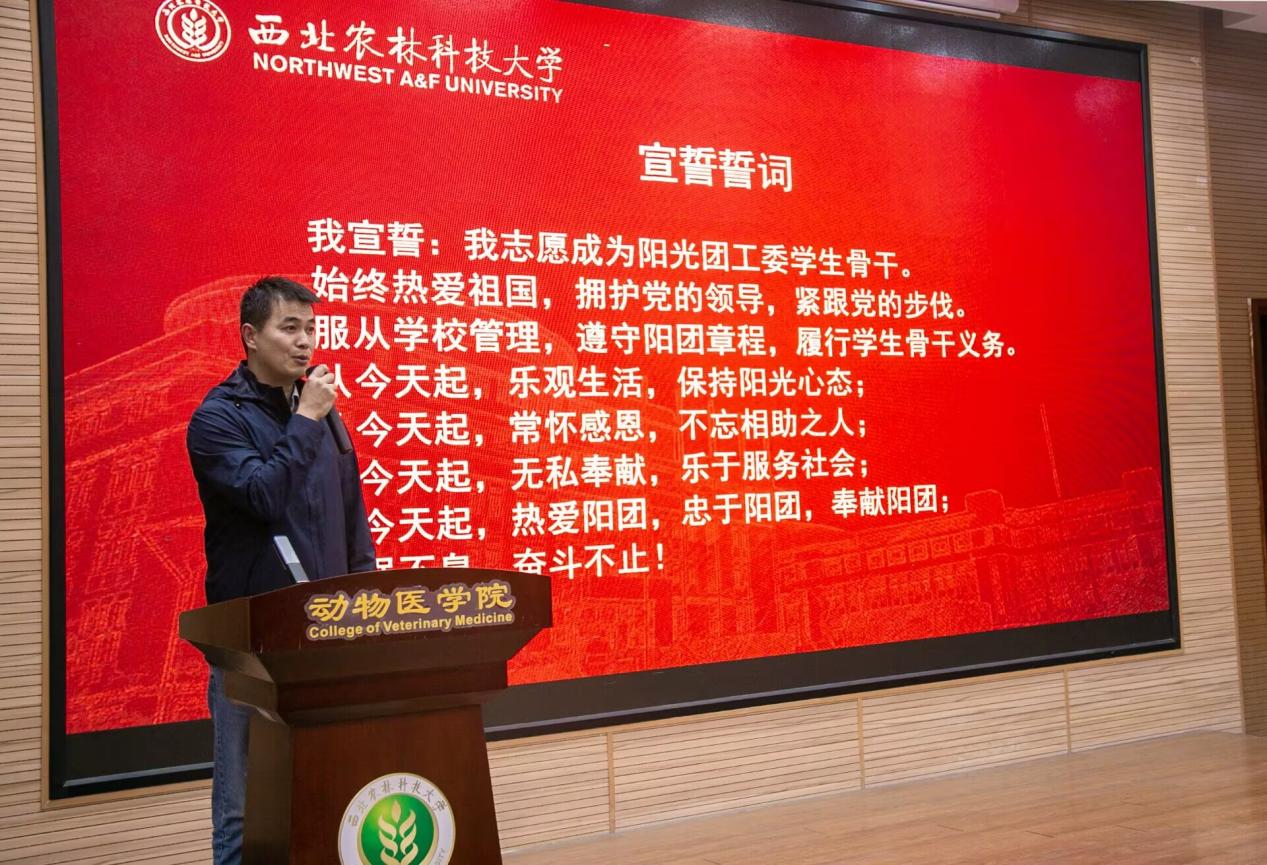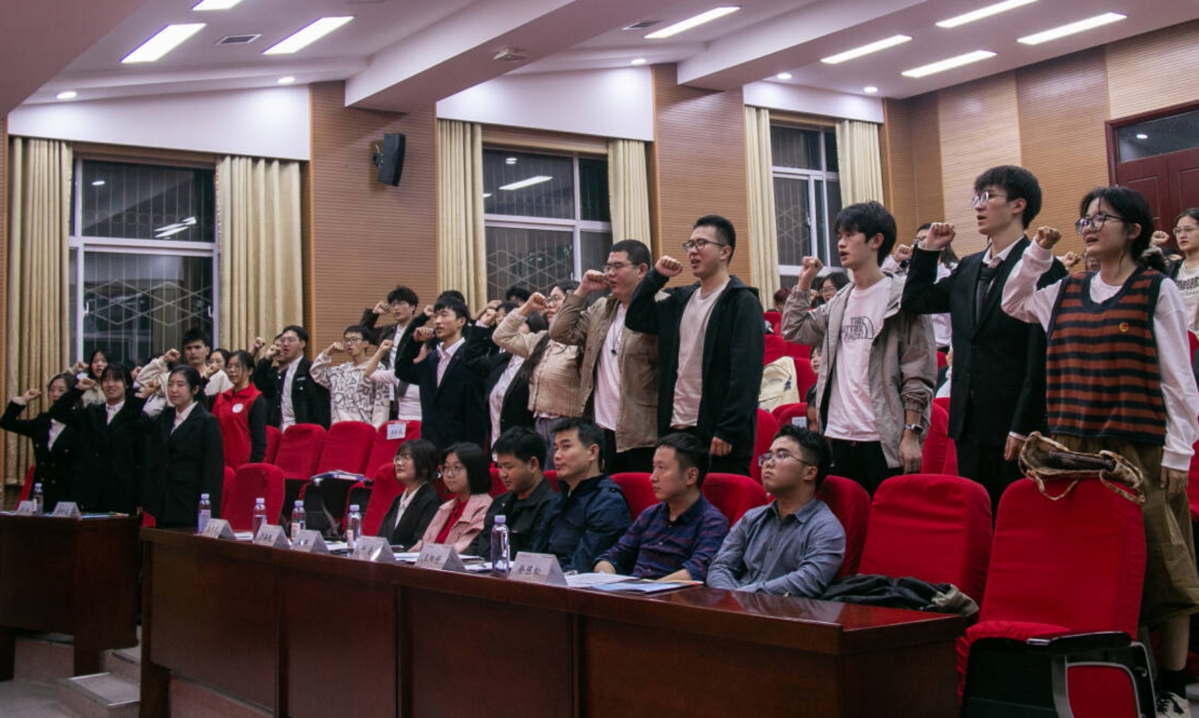 换届大会伴随着第十八届学生骨干代表的就职演讲渐入尾声。周克安同学在演讲中提到:新一届的学生骨干将继承优良传统,勇于担当,不断创新,为学校的发展贡献智慧和力量。宋乙文同学表示:将来要不忘初心,通过多元化活动与智能化管理提升团队效能,深化服务内涵,同时加强对外交流与宣传,共创美好未来。尔后,第十八届阳光团工委副书记牟妍菲带领新一届学生骨干集中宣誓,展现紧跟党的步伐、服务社会的决心。