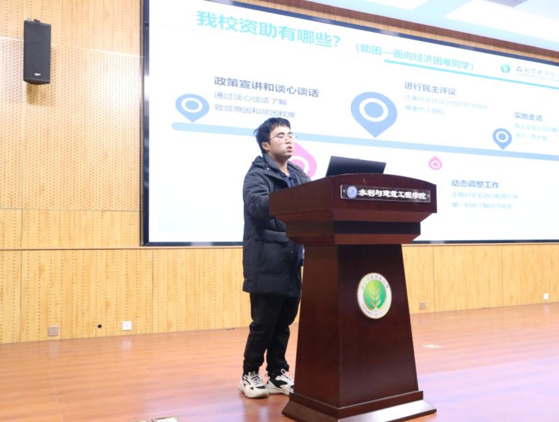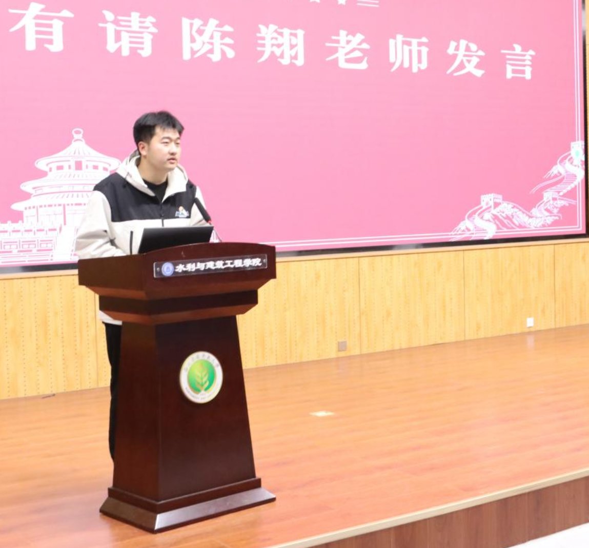 会议共设七个环节:开幕致辞、齐唱中国共产主义青年团团歌、徐陈松老师专题宣讲、陈翔老师精彩发言、优秀阳光团员代表李小田同学发言、阳团本院支部负责人王友钊同学宣读《2024-2025学年水利与建筑工程学院受助学生爱心实践活动管理考核细则》以及全体成员庄严宣誓。