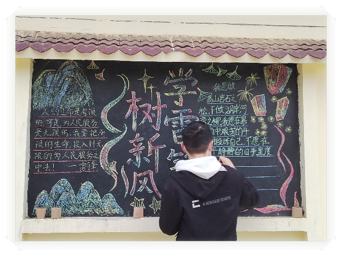 晨露未晞,支部成员和志愿者们怀着激动的心情提前到达村委会,进行布置教室、准备物资等支教准备活动。支教过程中,志愿者们耐心地指导小朋友们完成作业,帮助他们进行课前预习和课后复习,巩固学习成果。学习之余,志愿者们还与小朋友们一起进行了折纸、画画、阅读课外书等趣味活动,丰富了孩子们的周末生活……此外,爱在三月学雷锋,志愿服务暖人心,在村主任的大力支持下,志愿者们与小朋友合力创办了“学雷锋,树新风”主题黑板报。