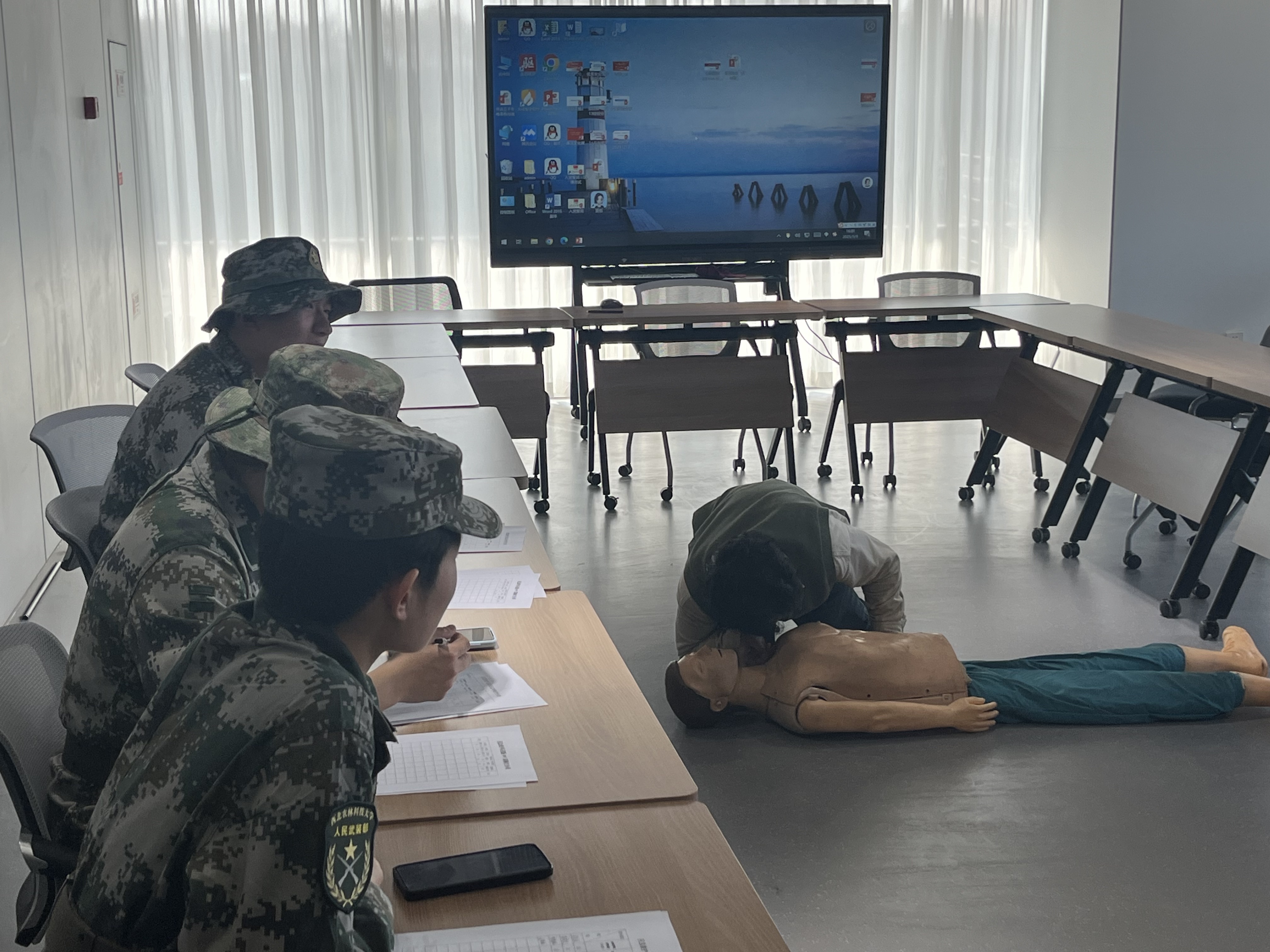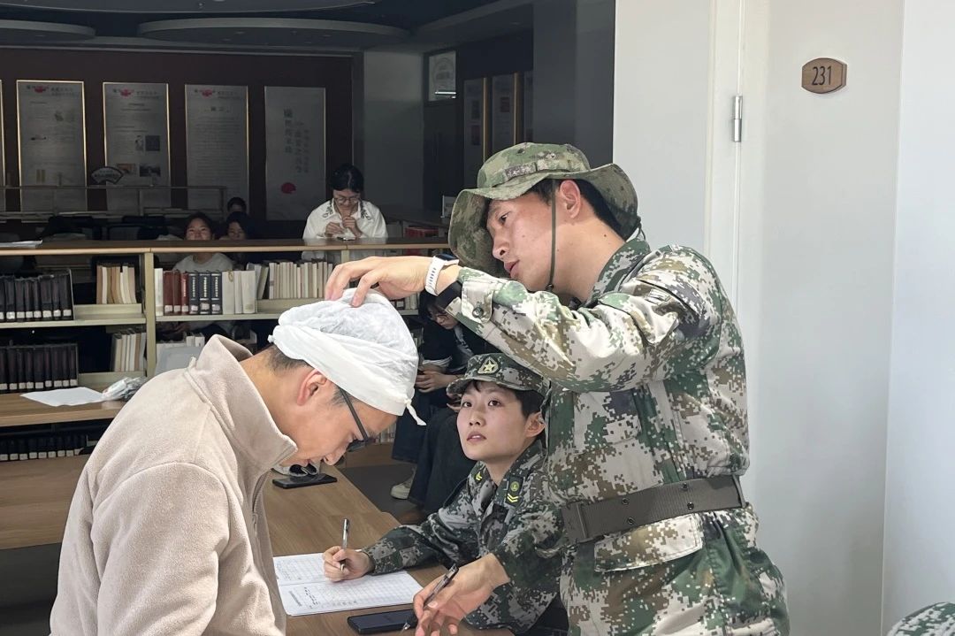 随后,参与选拔的同学们逐一进行了技能测试。他们专注认真,熟练地为模拟伤员进行包扎,并准确把握心肺复苏的节奏。面对测试中的各种挑战,大家表现得冷静自信,展示了扎实的急救知识和技能基础,教员们也对他们的表现进行了打分和评价。
