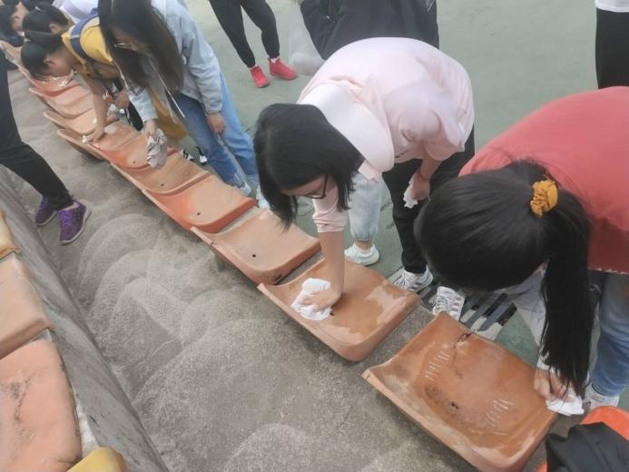 炎热的天气不能阻挡同学们的劳动热情,农学院2106班的同学们在社践委员的带领下提前准备好抹布等清扫工具,对田径场南部的座椅进行清洁,同学们不怕辛苦,积极主动,分工明确,工作高效。经过打扫后,座位焕然一新,同学们看着自己的劳动成果,都感到由衷的开心,纷纷为自己的劳动成果而感到自豪。