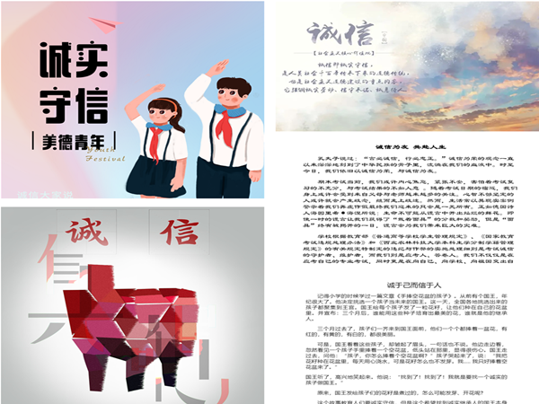 为引导青年学生讲诚信、树诚信、践诚信,培养新时代大学生诚信品质,弘扬诚信文化,推动诚信校园和诚信社会建设,学院于5月20日至29日举行了诚信月系列活动“诚信大家说”艺术作品征集,呼吁学生用海报、视频、文章等形式向周围的人传递诚信理念,形成诚实守信之风。