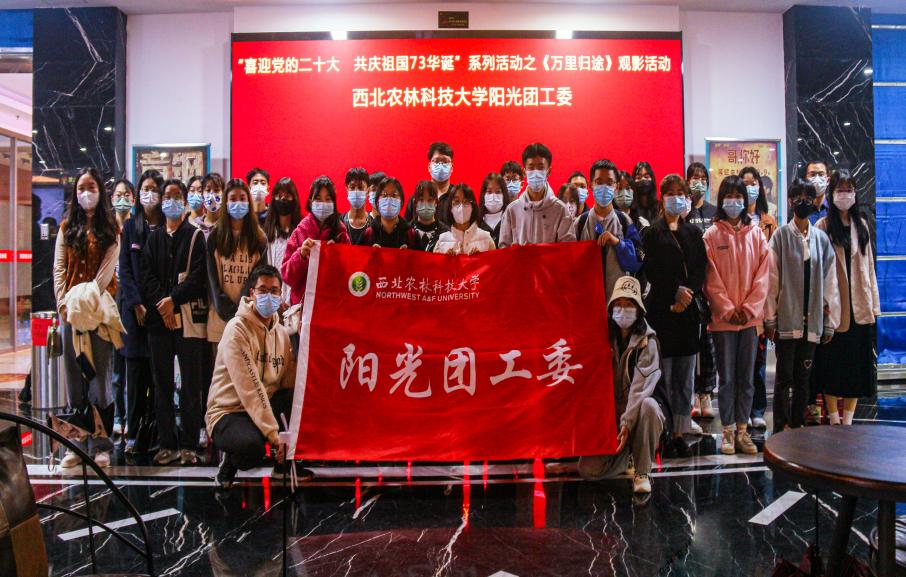 花季十月又至,祖国再添新岁。为进一步深化爱国主义教育,增强爱国情感,培养同学们尽己所能,无私奉献的精神,促使同学们坚定爱国信念,砥砺思想品格,10月6日下午,西北农林科技大学阳光团工委组织同学们一同前往橙天国际电影院开展《万里归途》观影活动,为祖国73周年华诞祝贺!