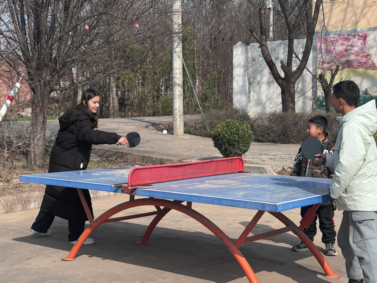 志愿者们根据专业特长,分别对6名小学生的语文、数学和外语进行指导,教授解题思路,帮助孩子们自主解决难题。完成学业辅导后,志愿者们还与孩子们一起利用村委会提供的活动器材,开展了丰富多彩的体育活动,如乒乓球、自行车骑行等。这些活动不仅丰富了孩子们的课余生活,还增进了他们之间的友谊。与此同时,几位心灵手巧的志愿者在村委会的黑板上绘制了一幅以雷锋精神为主题的黑板报,色彩斑斓的画面中充满了对雷锋精神的敬仰之情。