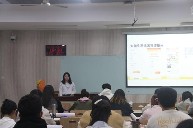大会伊始,阳光团工委项目部负责人侯文华对“善行100”活动进行了具体介绍。随后,侯文华向各负责人、各支部队长和现场的工作人员详细介绍了“善行100”淘宝小程序的使用方法、注意事项和操作步骤,并明确了相关活动安排、反馈要求和奖励设置。在介绍过程中,侯文华还向同学们展示了学校去年在此次活动中取得的优异成绩,并表示阳光团工委今年也必将勇立潮头,引航新章,乘千里长风,破万里巨浪。