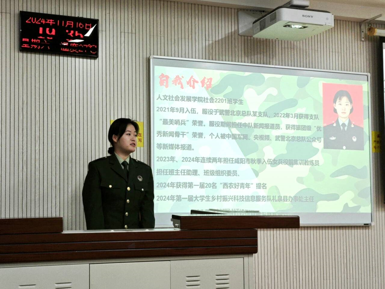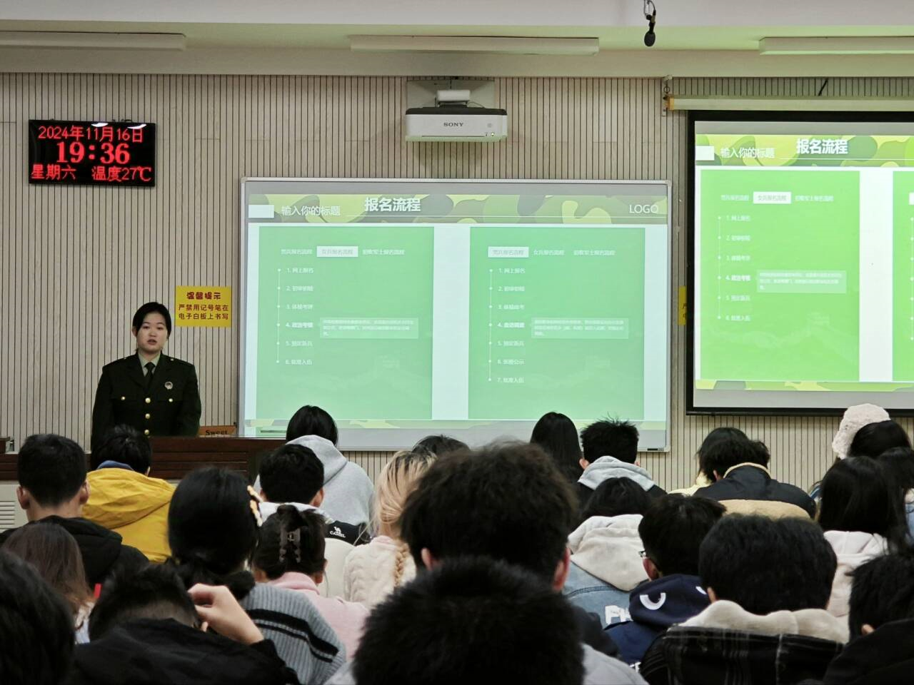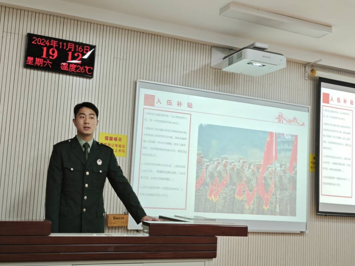 为了激发广大适龄青年的爱国热情,响应国家征兵号召,积极落实国家征兵政策,阳光团工委农学支部于11月16日成功举办了一场以“携笔从戎,不负韶华“为主题的征兵宣讲大会。