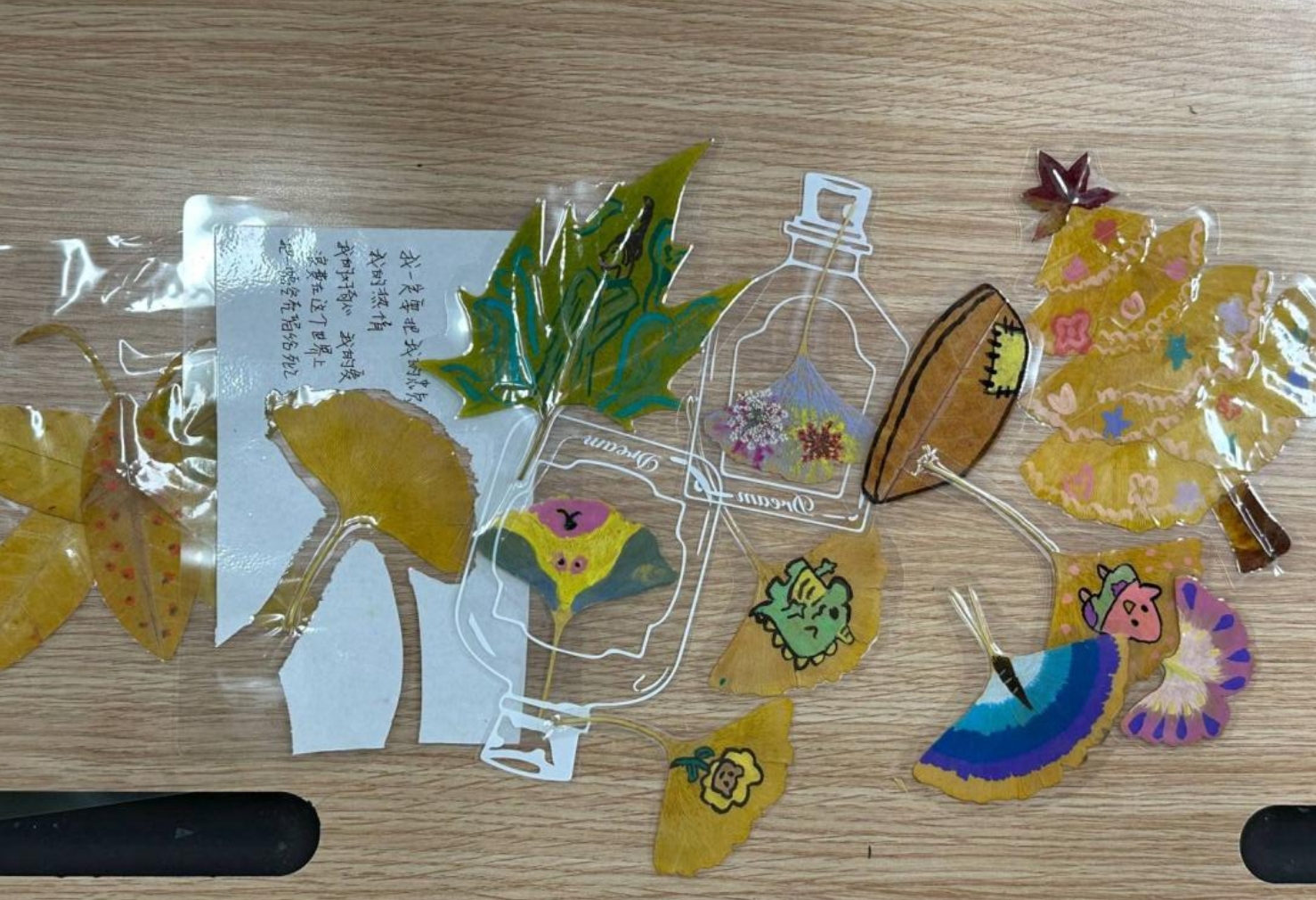 随着活动的深入,一枚枚精美的落叶书签逐渐呈现在大家眼前。它们有的简约大方,只保留落叶的自然形态与色彩;有的则充满创意,融入了绘画、剪纸、书法等多种艺术元素。每一枚书签都承载着参与者对秋天的美好回忆与无限遐想。活动现场欢声笑语不断,大家都沉浸在这份独特的创作乐趣中,相互展示自己的成果,相互鼓励夸赞,大家脸上都挂着笑容。