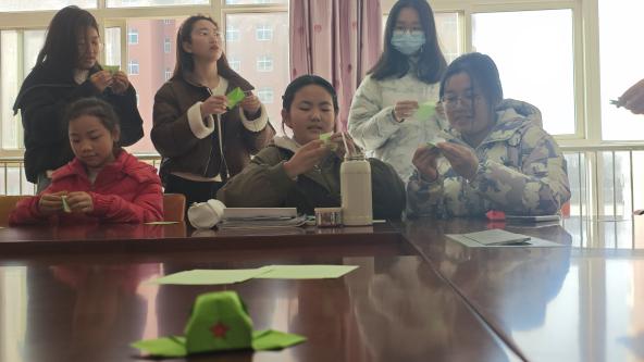 除了故事会,志愿者们还准备了有趣的折纸活动。他们手把手地教孩子们叠雷锋帽、爱心和星星。一张张彩纸在孩子们的小手中翻飞,变成一个个充满意义的作品。